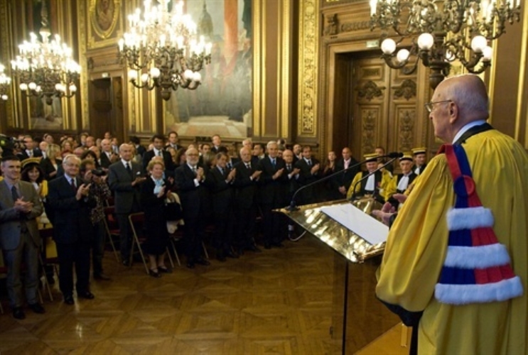 Il Presidente Giorgio Napolitano riceve dal Presidente dell'Università Sorbonne-Paris IV Georges Molinié, il dottorato "honoris causa"