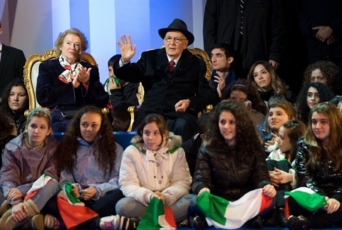 Il Presidente Giorgio Napolitano e la Signora Clio nel corso della "Notte Tricolore"