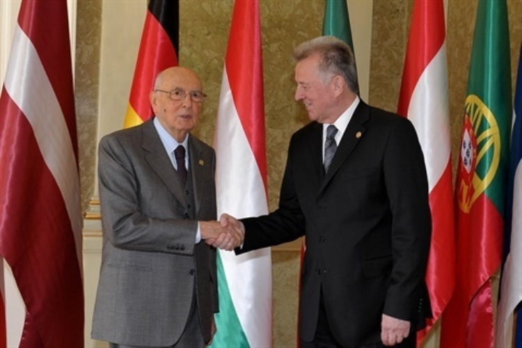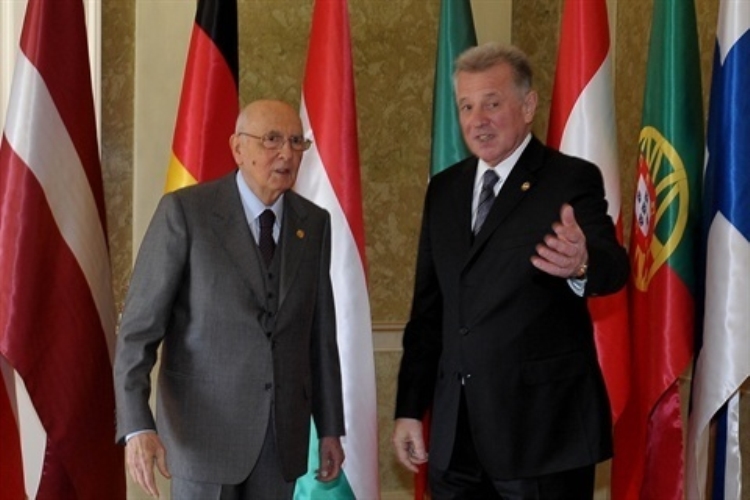 Il Presidente Giorgio Napolitano con il Presidente della Repubblica di Ungheria, Pal Schmitt in occasione dell'incontro Arraiolos "Uniti per l'Europa"