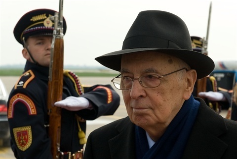 Il Presidente Giorgio Napolitano al suo arrivo all'aeroporto di Bratislava, in occasione della visita ufficiale nella Repubblica Slovacca