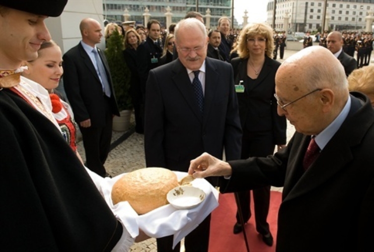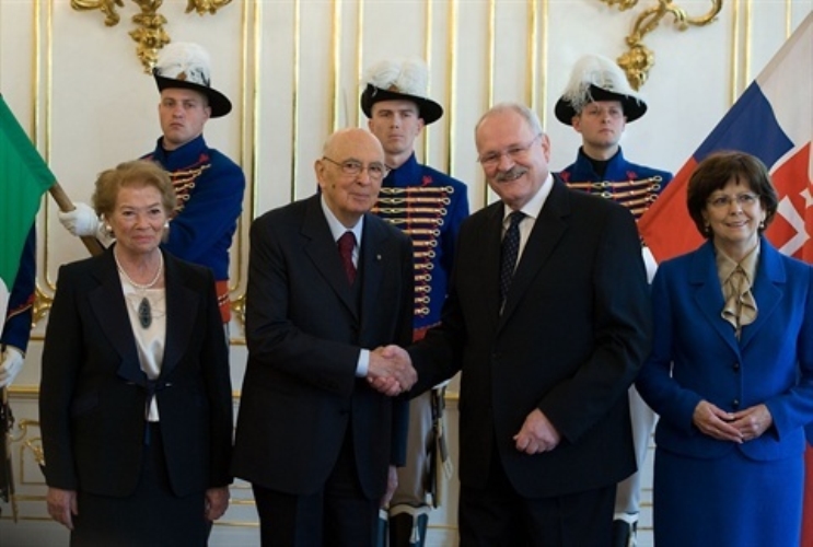Il Presidente Giorgio Napolitano, il Presidente della Repubblica Slovacca Ivan Gašparovič e le rispettive consorti