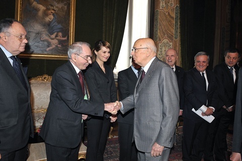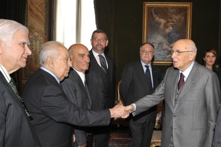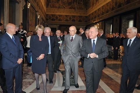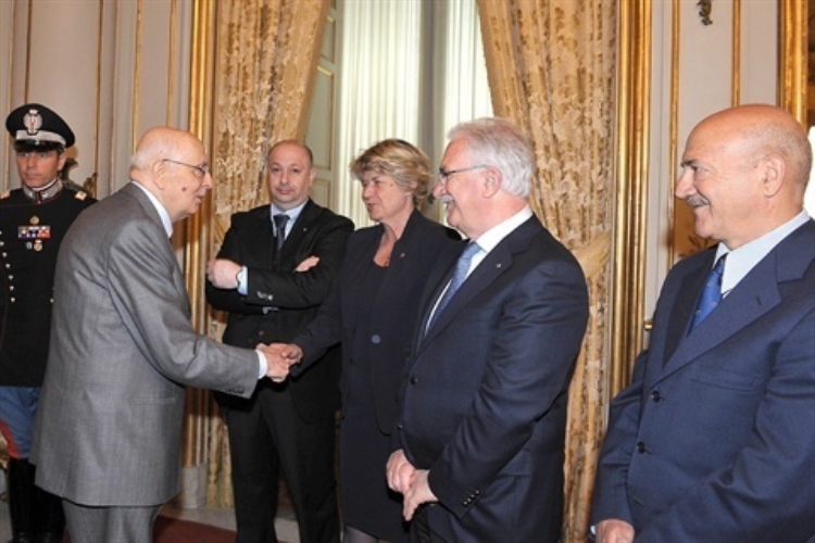 Il Presidente Giorgio Napolitano con i Presidenti, i Vice Presidenti delle Federazioni, Associazioni e Maestri del Lavoro