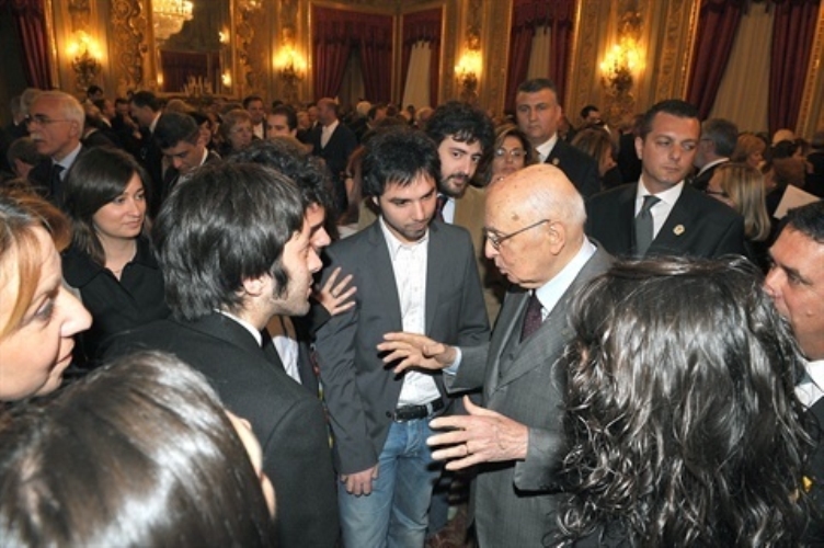 Il Presidente Giorgio Napolitano con una rappresentanza di giovani precari delle Organizzazioni Sindacali nel corso della celebrazione della Festa del Lavoro