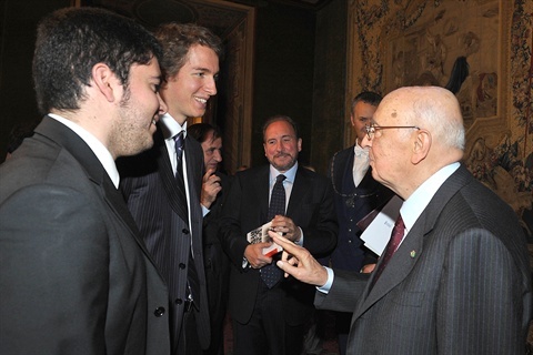 Il Presidente Giorgio Napolitano con Eugenio Occorsio il figlio Vittorio e il nipote Luca in occasione del Giorno della Memoria dedicato alle vittime del Terrorismo