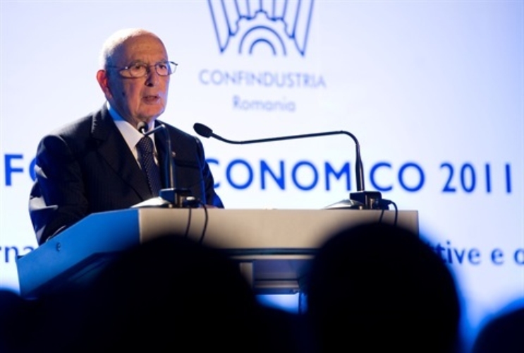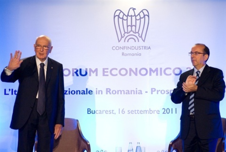 Il Presidente Giorgio Napolitano e l'Amb. d'Italia a Bucarest Mario Cospito, al termine del seminario degli imprenditori italiani che operano in Romania