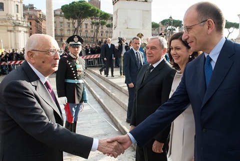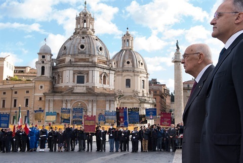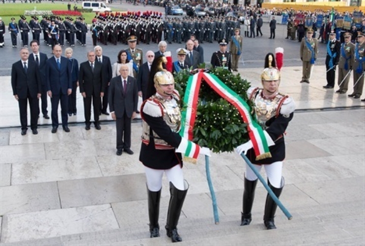 Il Presidente Giorgio Napolitano depone una corona d'alloro sulla Tomba del Milite Ignoto all'Altare della Patria in occasione delle celebrazioni nel Giorno dell'Unità Nazionale e Giornata delle Forze Armate