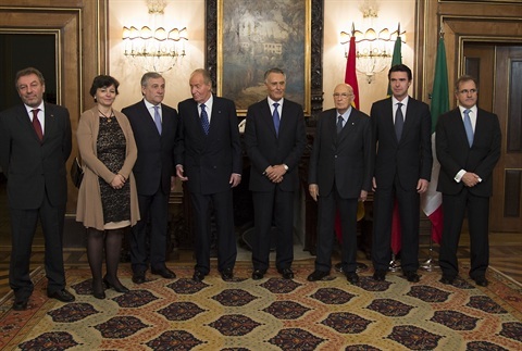 Il Presidente Giorgio Napolitano con il Presidente della Repubblica Portoghese Anibal Cavaco Silva e il Re di Spagna Juan Carlos in occasione del IX Simposio Cotec Europa