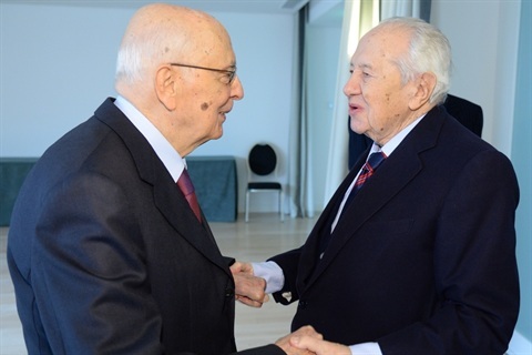 Il Presidente Giorgio Napolitano con Mario Soares, ex Presidente della Repubblica del Portogallo