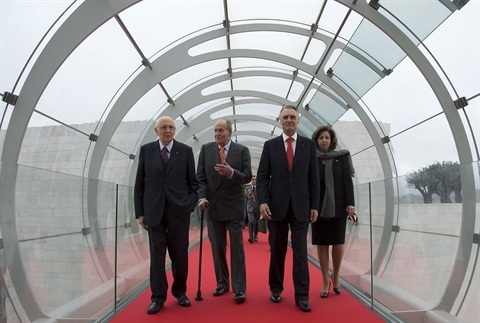 Il Presidente Giorgio Napolitano con il Presidente della Repubblica Portoghese Anibal Cavaco Silva e il Re di Spagna Juan Carlos in occasione della visita alla Fondazione Champalimaud