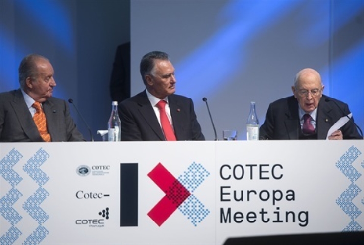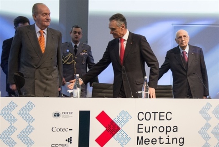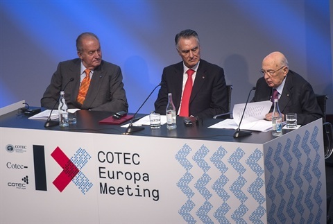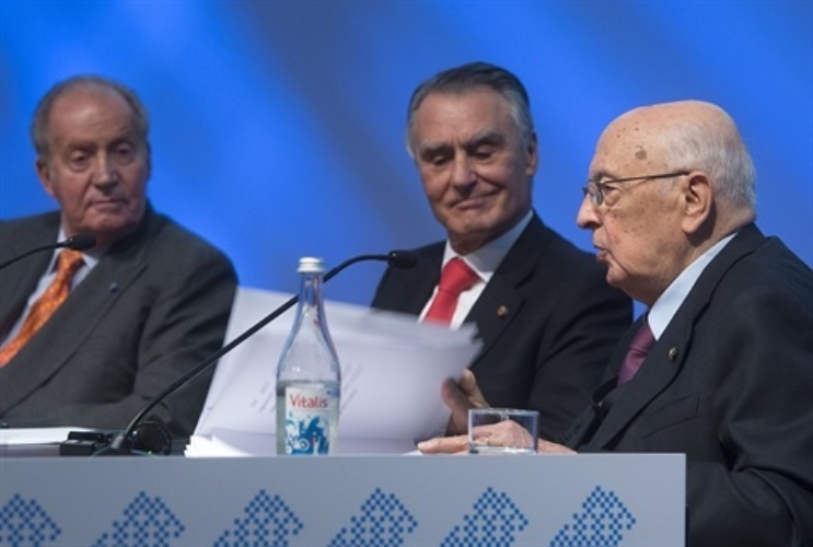 Il Presidente Giorgio Napolitano con il Presidente della Repubblica Portoghese Anibal Cavaco Silva e il Re di Spagna Juan Carlos nel corso del IX Simposio Cotec Europa