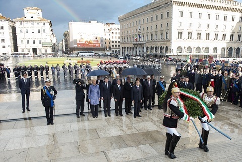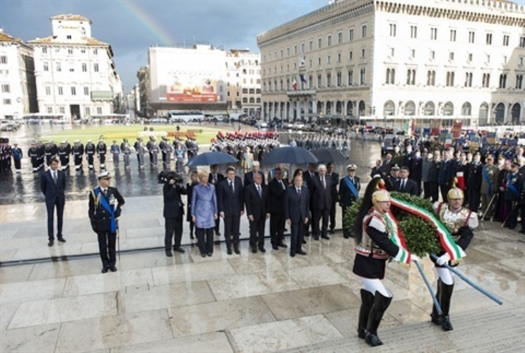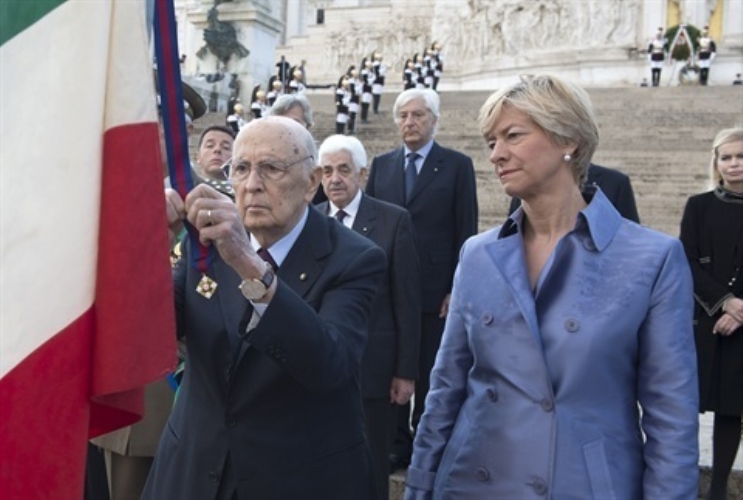 Il Presidente Giorgio Napolitano durante la deposizione di una corona d'alloro all'Altare della Patria in occasione del Giorno dell'Unità Nazionale e Giornata delle Forze Armate