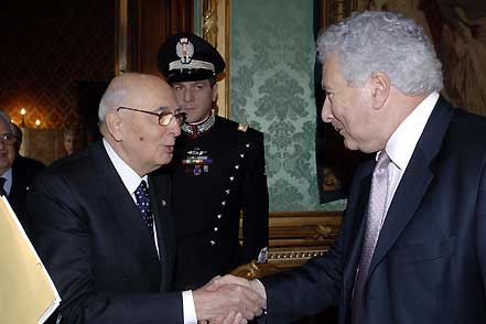 Il Presidente Giorgio Napolitano con il Presidente dell'Unione delle Comunità Ebraiche Italiane, Renzo Gattegna, in occasione della celebrazione del "Giorno della Memoria"
