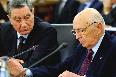 Il Presidente Giorgio Napolitano con il Vice Presidente del CSM Nicola Mancino, durante il suo intervento