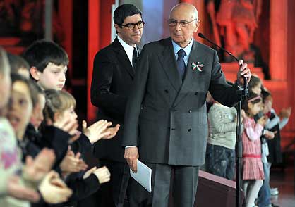 Il Presidente Giorgio Napolitano durante l'incontro a Palazzo Vecchio sulla Costituzione Italiana.