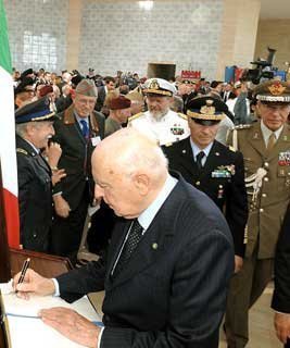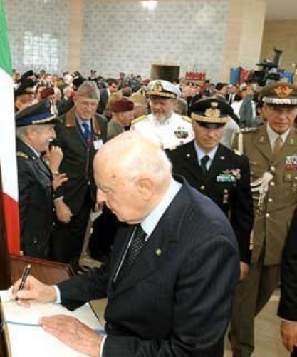 Il Presidente Giorgio Napolitano firma l'Albo d'Onore in occasione della cerimonia nazionale di commemorazione del 66° anniversario della battaglia di El Alamein