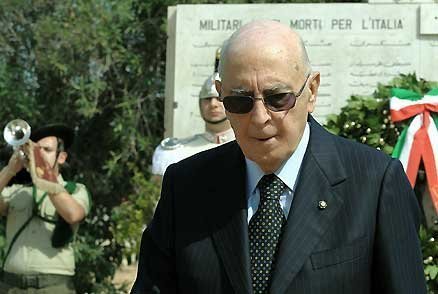 Il Presidente Napolitano al Cimitero degli Ascari Libici dopo aver deposto una corona di alloro, in occasione della cerimonia di commemorazione internazionale del 66° della battaglia di El Alamein