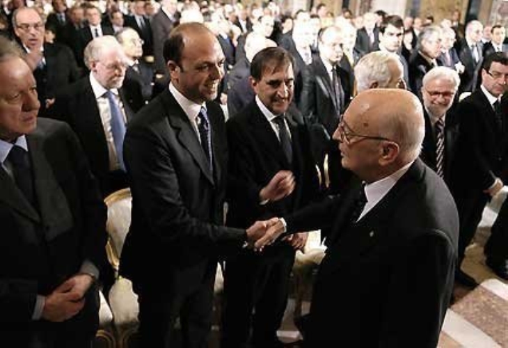 Il Presidente saluta alcuni Ministri del Governo, al termine del suo intervento, in occasione del tradizionale scambio di auguri con le Alte Cariche dello Stato