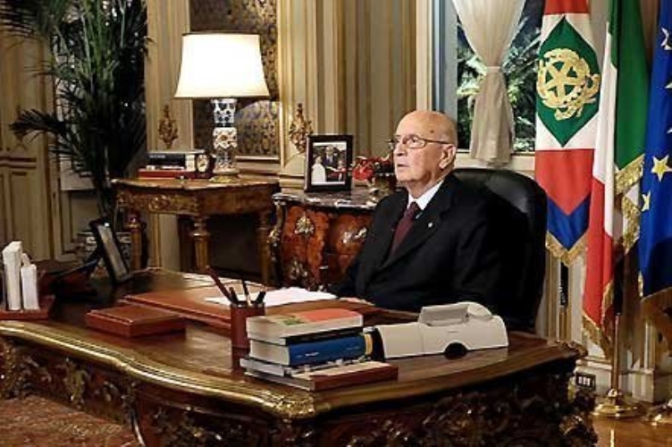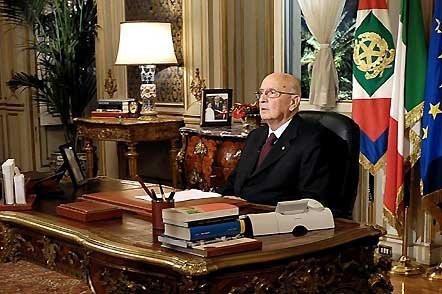 Il Presidente della Repubblica Giorgio Napolitano durante la trasmissione del messaggio di fine anno