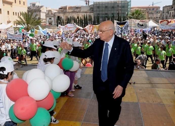 Il Presidente Giorgio Napolitano in Piazza Magione