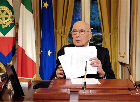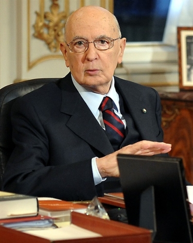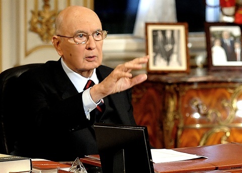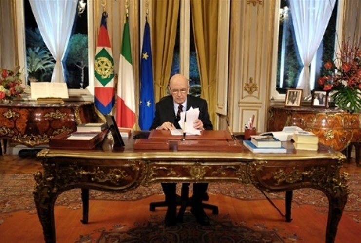 Il Presidente Giorgio Napolitano, nel suo studio, durante il messaggio televisivo a reti unificate agli italiani