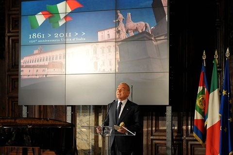 Il Dott. Gianni Letta, Sottosegretario di Stato alla Presidenza del Consiglio dei Ministri, durante il suo in tervento in occasione della cerimonia su "La lingua italiana fattore portante dell'identità nazionale", nel 150° anniversario dell'Unità .