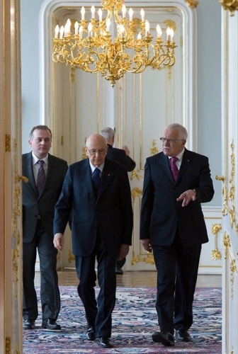 Il Presidente Giorgio Napolitano con il Presidente della Repubblica Ceca Vaclav Klaus al Castello di Praga, in occasione della visita di Stato