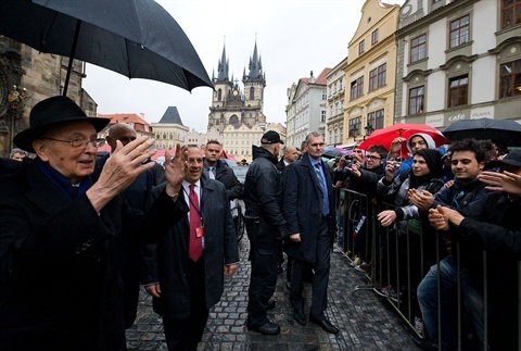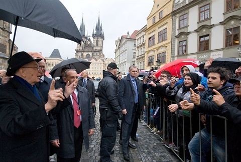 Il Presidente Giorgio Napolitano lascia il Municipio al termine dell'incontro con il Sindaco di Praga