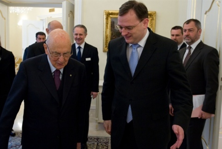 Il Presidente Giorgio Napolitano con il Primo Ministro della Repubblica Ceca Petr Nečas