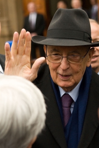 Il Presidente Giorgio Napolitano all'uscita della residenza