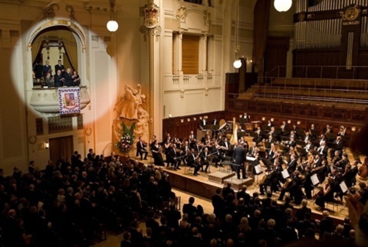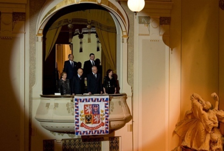 Il Presidente Giorgio Napolitano, il Presidente della Repubblica Ceca Vaclav Klaus e le rispettive consorti in occasione del concerto alla Casa Municipale di Praga, eseguito dalla Filarmonica della Scala di Milano