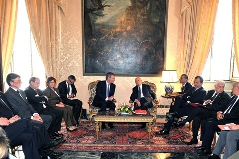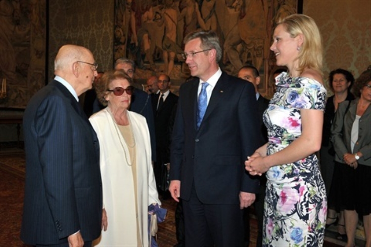 Il Presidente Giorgio Napolitano con il Presidente della Repubblica Federale di Germania Christian Wulff e consorti