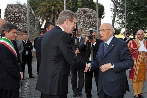 Il Presidente Giorgio Napolitano e il Presidente della Repubblica Federale di Germania Christian Wulff al Campidoglio