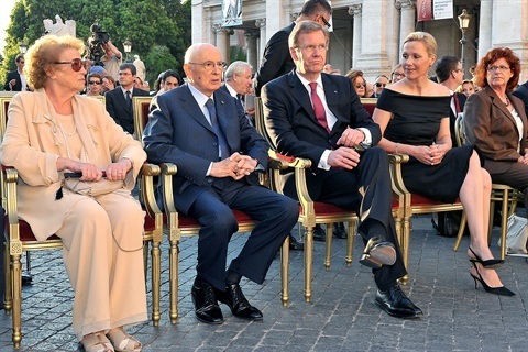 Il Presidente Giorgio Napolitano, il Presidente della Repubblica Federale di Germania Christian Wulff e le consorti al concerto sulla Piazza del Campidoglio