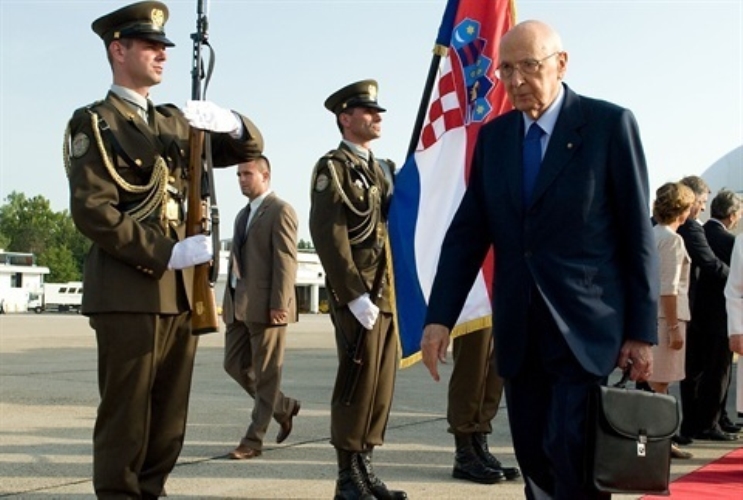 Il Presidente Giorgio Napolitano al suo arrivo all'aeroporto di Zagabria, in occasione della visita di Stato nella Repubblica di Croazia