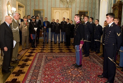 Il Presidente Giorgio Napolitano riceve il saluto dagli Allievi della Accademie Militari