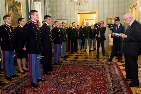 Il Presidente Giorgio Napolitano rivolge il suo indirizzo di saluto agli Allievi delle Accademie Militari