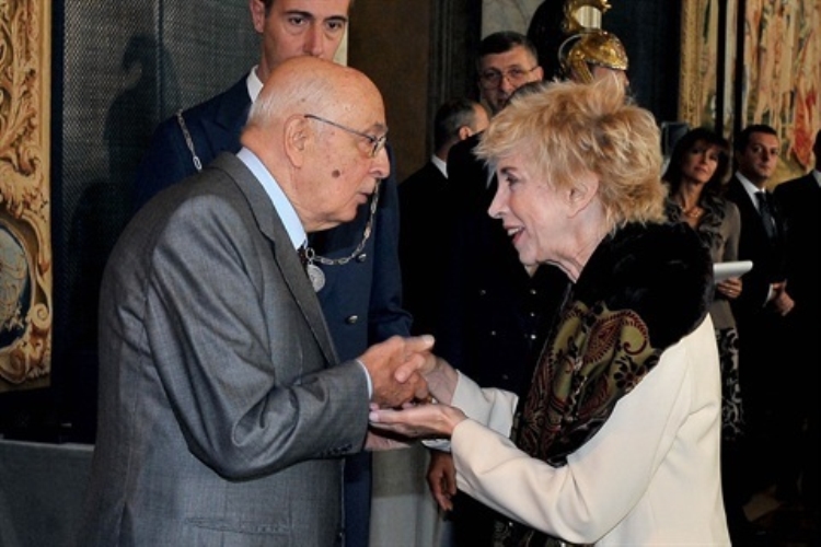 Il Presidente Giorgio Napolitano con Mariangela Melato in occasione della Giornata dello Spettacolo