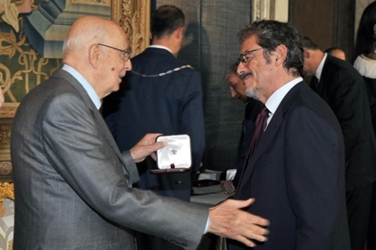Il Presidente Giorgio Napolitano con Massimo Ghini in occasione della Giornata dello Spettacolo