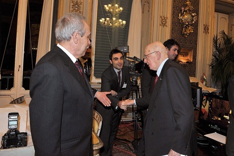 Il Presidente della Repubblica Giorgio Napolitano saluta gli operatori e tecnici della Rai