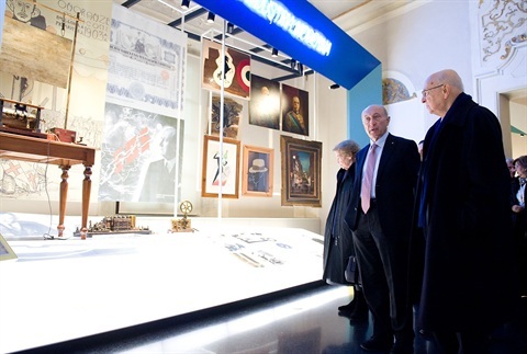 Il Presidente Giorgio Napolitano accompagnato dal Prof. Fabio Roversi Monaco, visita il "Museo della Storia di Bologna", allestito presso Palazzo Pepoli