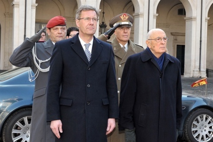 Il Presidente Giorgio Napolitano con il Sig. Christian Wulff, Presidente della Repubblica Federale di Germania in visita di Stato in Italia, durante gli onori militari