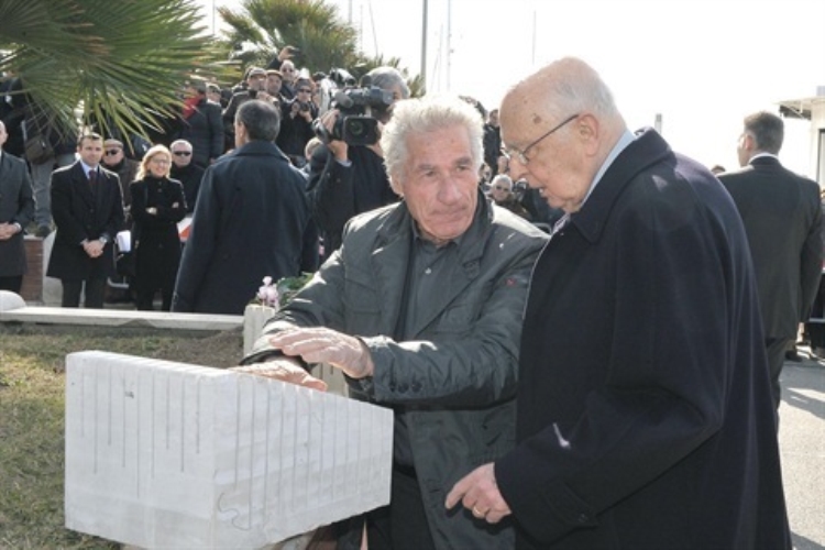 Il Presidente Giorgio Napolitano nel corso dell'inaugurazione della scultura "Pietra Tricolore" alla presenza dell'artista Pinuccio Sciola