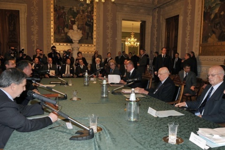 Il Presidente Giorgio Napolitano durante l'incontro con i rappresentanti delle realtà economiche e delle forze sociali della Sardegna