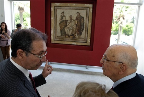 Il Presidente Giorgio Napolitano nel corso della visita al Museo Nazionale del Bardo