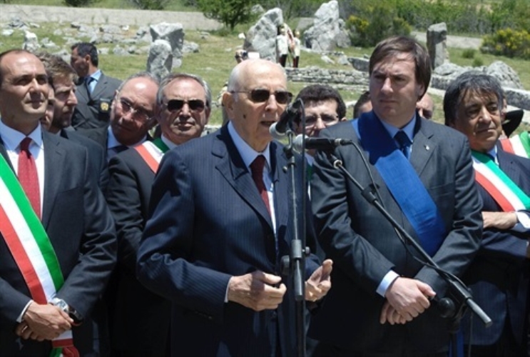 Il Presidente Giorgio Napolitano durante il suo intervento a Portella della Ginestra