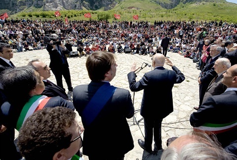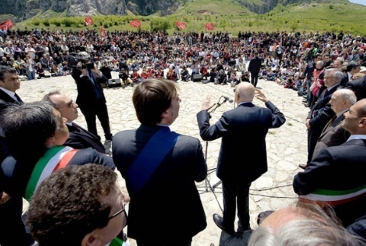 Il Presidente della Repubblica Giorgio Napolitano durante il suo intervento a Portella della Ginestra