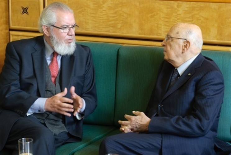 Il Presidente Giorgio Napolitano nel corso dei colloqui con il Direttore Generale dell'OIL Juan Somavìa