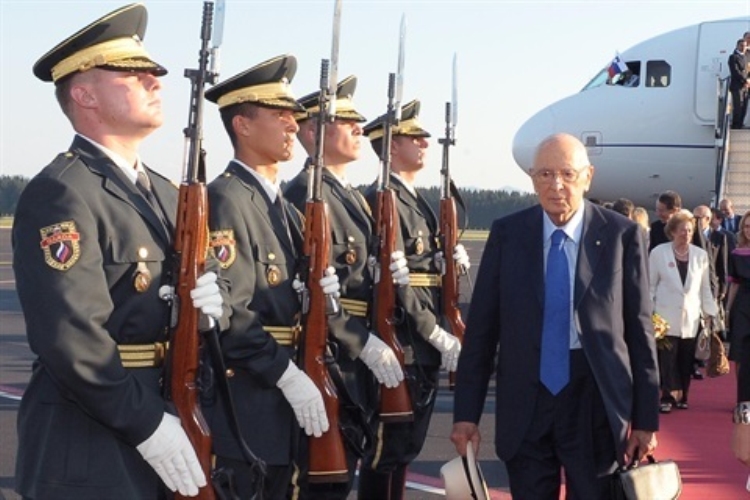 Il Presidente Giorgio Napolitano al suo arrivo all'Aeroporto "Joze Pucnik" in occasione della visita di Stato nella Repubblica di Slovenia