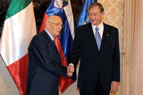 Il Presidente Giorgio Napolitano con il Presidente della Repubblica di Slovenia Danilo Turk, al Castello di Brdo
