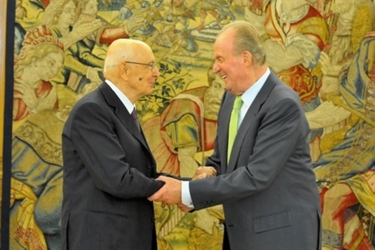 Il Presidente Giorgio Napolitano accolto da S.M. il Re di Spagna Juan Carlos I in occasione del VIII Simposio Cotec Europa
